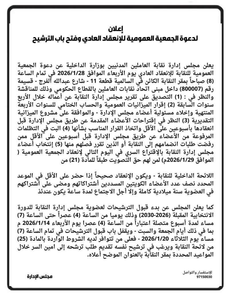 نقابة العاملين المدنيين بوزارة الداخلية